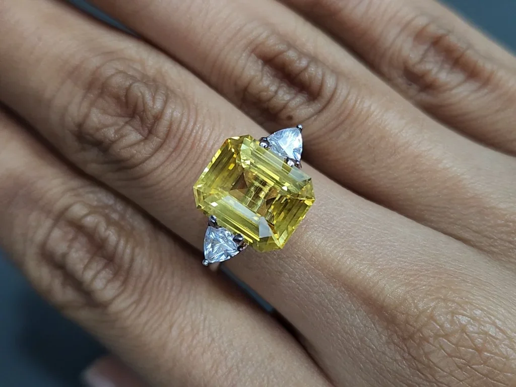 + Free ShippingA stunning 7.07 ct untreated Ceylon Vivid Yellow sapphire, precision-cut in an emerald shape with exceptional clarity and brilliance—perfect for an elegant custom ring or pendant.